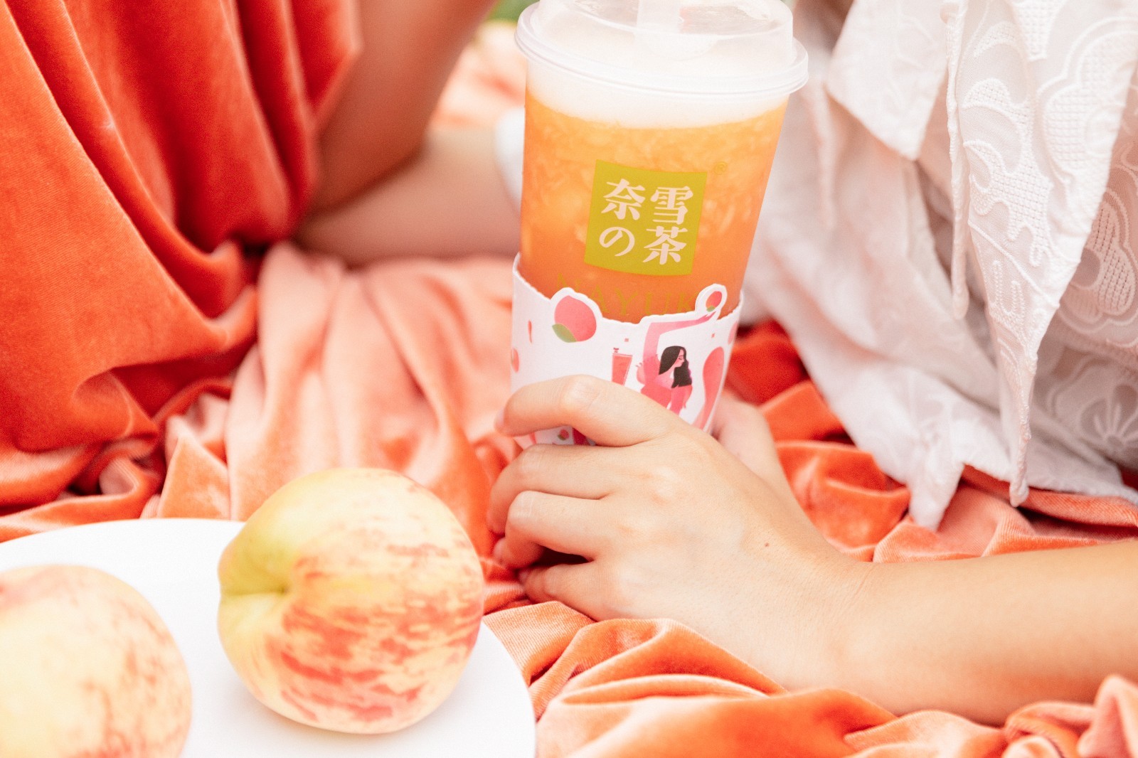 霸气桃桃,精选成熟的红梅蜜桃,果肉细腻柔软,搭配清冽甘香的金观音茶底组成绵密的冰沙,圆你一个甜蜜而清爽的仲夏梦。