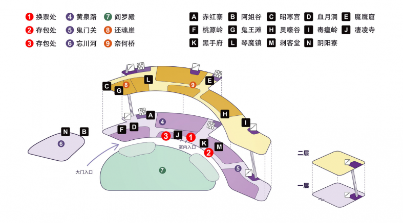 拿到令牌后,用相应的令牌数量和颜色,进14个密室。14个密室的名字有赤红寨、阿姐谷、昭寒宫、血月洞等等,其背后都是有民间鬼神故事的。